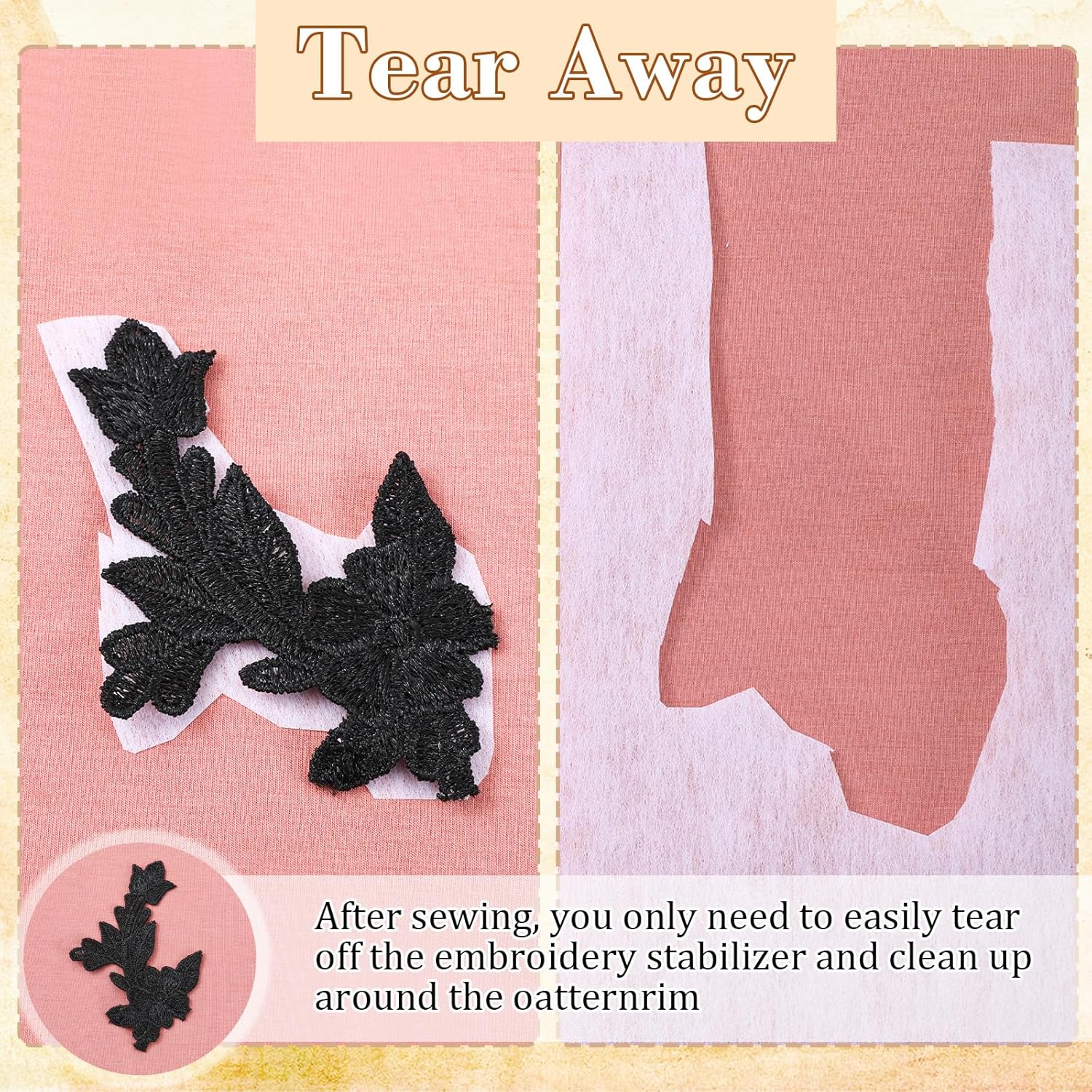 Welcome to our store!Features:What You Will Receive: the package contains 2 rolls of embroidery stabilizers, each roll measures about 12 inches x 54.7 yards, can be cut into desired sizes, enough to meet your various embroidery needs.Wide Application: our embroidery machine stabilizer tear away is the ideal helper for machine embroidery and hand sewing, friendly for beginners and skilled people, and can be applied to natural fibers, thicker fabrics, firmly woven fabrics.Package Includes:2 Rolls Tear Away Embroidery StabilizerSpecifications:Color: WhiteMaterial: PolyesterSize: About 12 inch x50 yardsNotes:Manual measurement, please allow slight errors on size.The color may exist a slight difference due to different screen display.