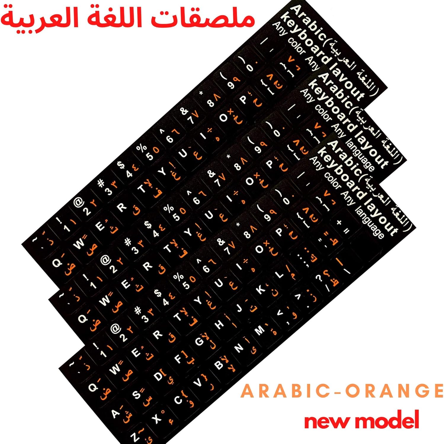 The English - Arabic characters are spread onto non-transparent – high quality matte PVC. The English - Arabic characters/letters are printed underneath protective coat.This method is used to prevent ink from smearing or coming off as a keyboard is being use. Save money on buying a new English - Arabic keyboard. Instead, use these stickers as it is the easiest as well as the most inexpensive way to replace (or renew) the existing characters on your keyboard.Each set of the English - Arabic stickers is compatible with different models of Notebook, Laptop or desktop keyboards. The English - Arabic keyboard stickers will not slip off, tear, nor fade away even after years of use.The stickers are self-adhesive, which allows them to be evenly applied onto a keyboard without damaging its keys. The adhesive coat will not ooze, harden or wear out with time. The stickers are intended to simplify your job, make communication even more satisfying as well as less time consuming while doing it on a computer.Discover the World of perfection and simplicity with our product.*APPLICATION OF STICKERS.You may find the following instructions very useful before applying stickers on you keyboard/laptop:1. Clean your existing keyboard/laptop keys thoroughly before applying stickers.2. Follow the corresponding letter of English alphabet printed in smaller size, underneath each character.3. It is proven to be easier to apply stickers by previously cutting/banding them by rows.4. Use tweezers to hold each sticker, and then, place it upon the correct key.5. Then press that key down with your finger so the sticker remains in place.