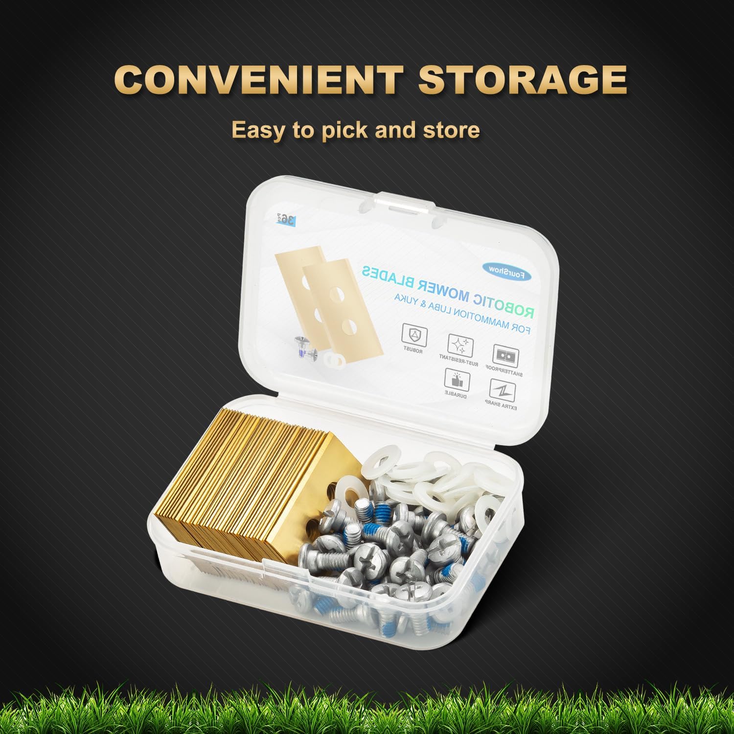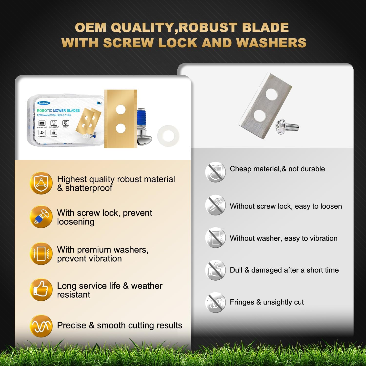 36Pcs Replacement Blades Compatible for ALL Mammotion Luba AWD Luba 2 AWD Luba mini AWD Yuka & Yuka Mini series, Robust Titanium Replacement Robotic Lawnmower Blades, with Plastic Washers